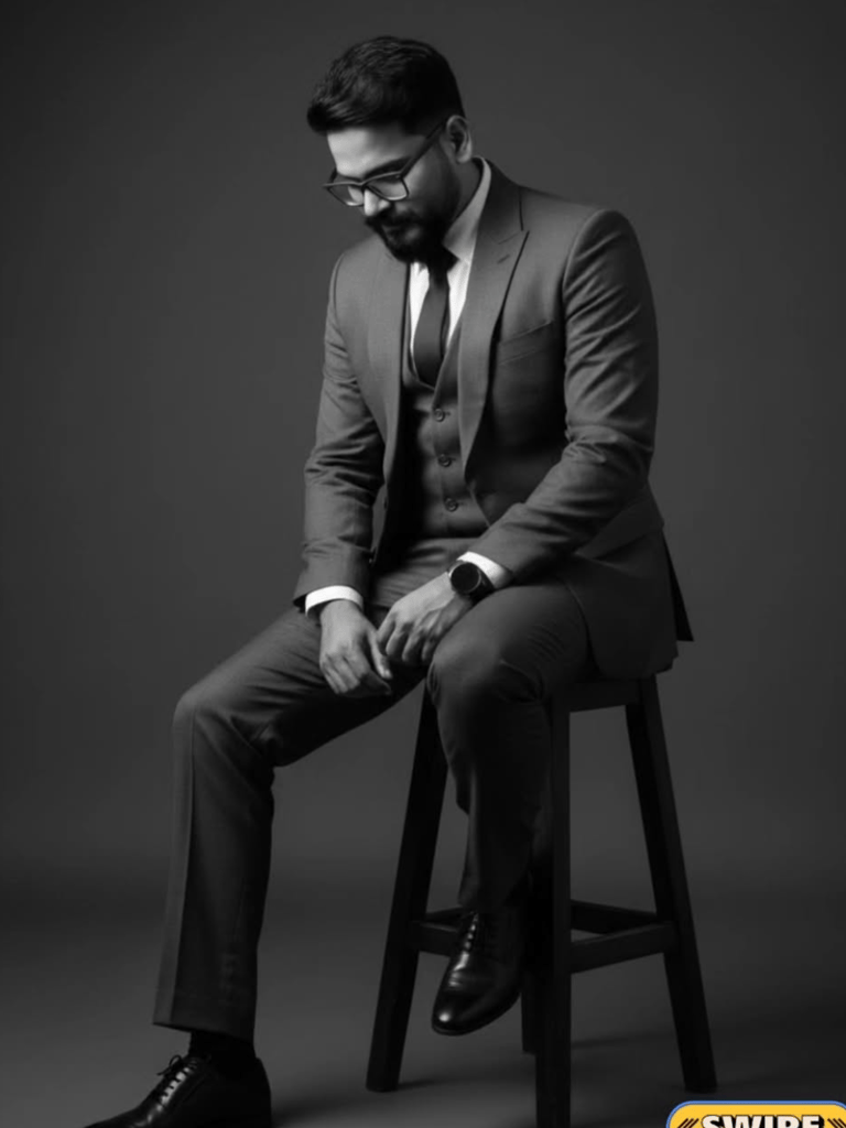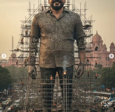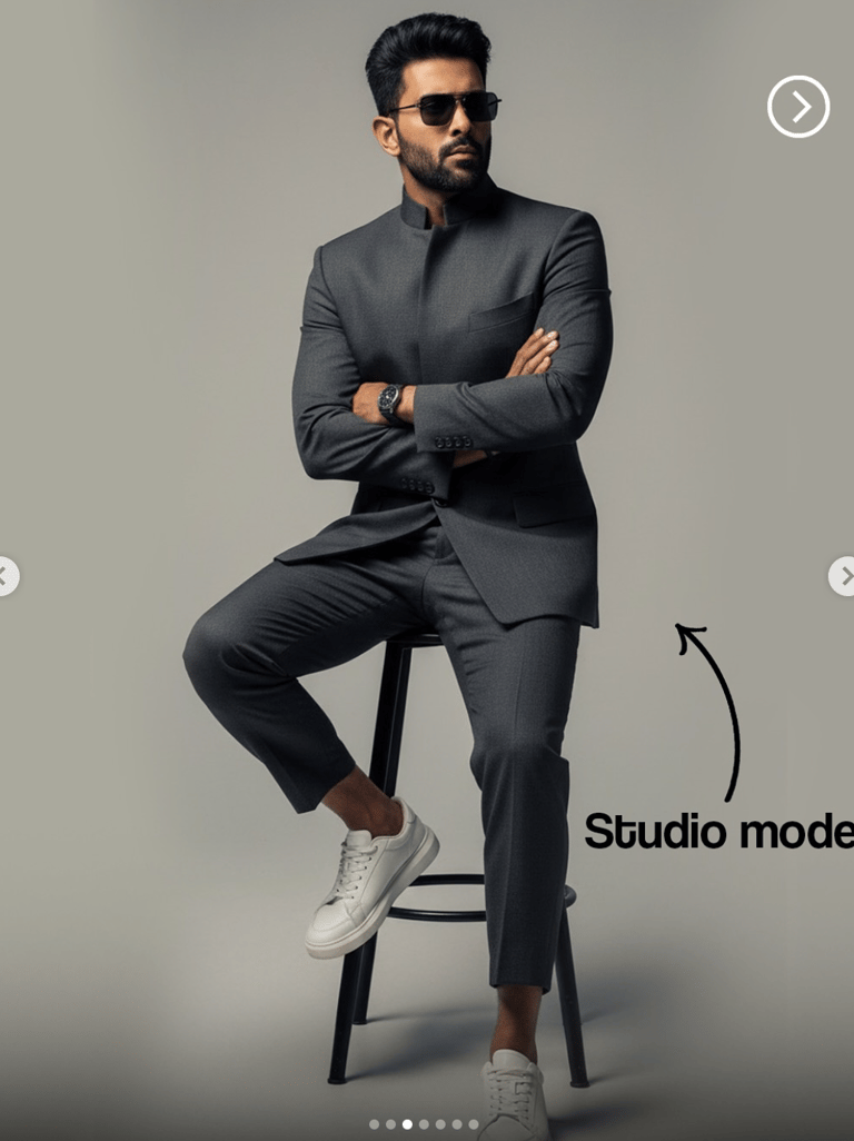A cinematic automotive photoshoot of me, keeping my real face unchanged. The scene is composed of three perspectives: 1. Interior close-up (mirror reflection): Tight portrait of my face reflected in the driver-side mirror. My gaze is serious and focused, looking forward with determination. Only part of my profile is visible, framed cleanly in the mirror, background softly blurred, cinematic intensity. 2. Exterior full-body (correct placement): I am standing confidently to the side of a sleek black Ford Mustang, not in the center. My arms are crossed, posture relaxed but strong. My left leg is straight, right leg bent slightly at the knee with foot casually resting against the car. My gaze is directed slightly off-camera with a calm, assertive expression. The car remains dominant in the frame, shot at eye-level with a slightly wide lens, showing its front and side clearly. Outfit: fitted black polo shirt, slim grey jeans, brown leather boots. The look is minimal yet stylish, emphasizing a modern masculine vibe. Pose exactly like a professional automotive editorial shoot. 3. Rear car shot: Low perspective rear angle of the Mustang, glossy black surface, taillights glowing, license plate reading Pushpendra.tech. Cinematic urban concrete environment, natural but diffused lighting, emphasizing the car's muscular presence. Style: cinematic automotive editorial, moody and stylish, urban modern architecture. Professional fashion-meets-car photography. My face unchanged