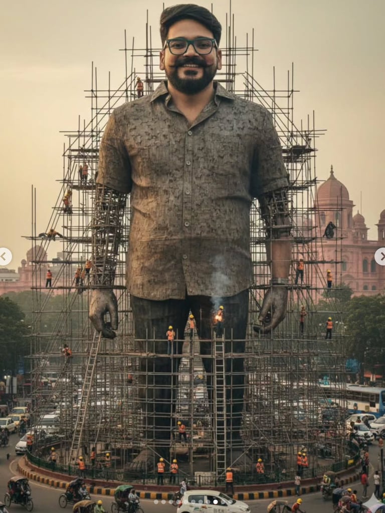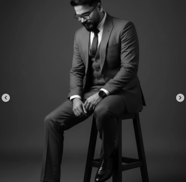 Ultra-realistic lifestyle portrait of [my photol, Indian male, medium brown skin, short black hair, confident and serious look. Wearing light beige linen suit with neutral shirt, dark sunglasses. Hands casually in pockets, standing in a modern city setting with glass buildings and palm trees. Bright natural daylight, strong shadows, DSLR 50mm f/2.0 lens, medium waist-up shot, slightly low angle. Realistic skin texture, natural warm tones, fabric details clear. Editorial fashion campaign style.
